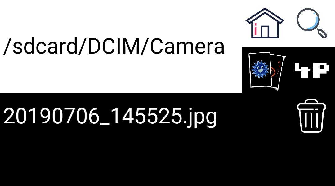Pressing the search button will enable you to type in a custom path in place of the current directory. Pressing this button again will direct you to the path of your choice. If the path is invalid you will be directed to an (intended) error screen. In this case tapping the screen will get you back to the explorer. |