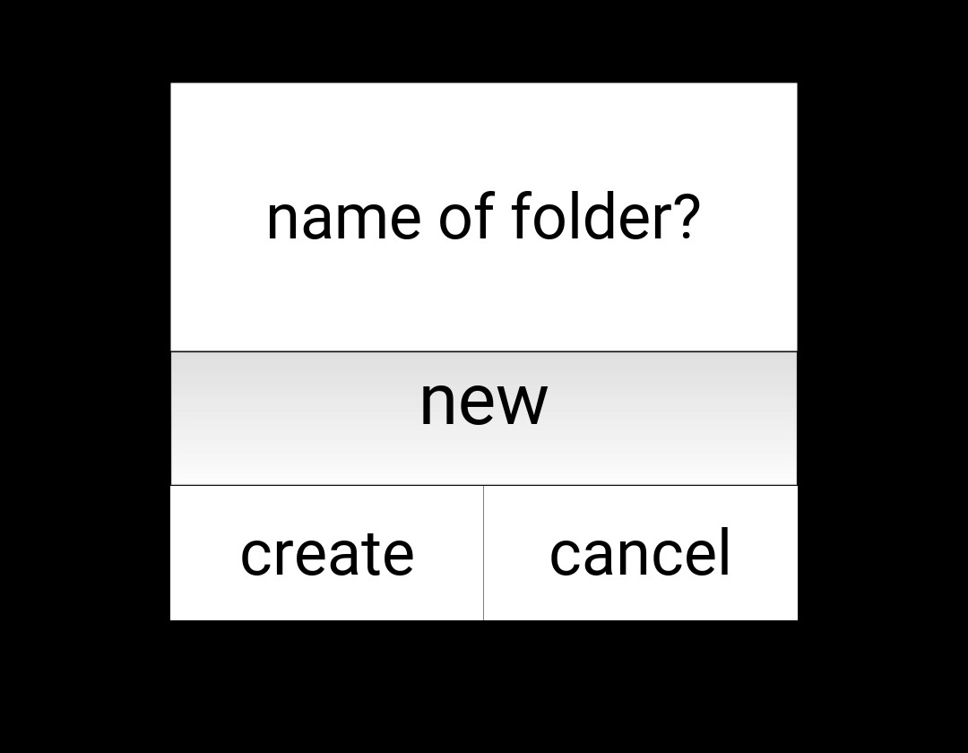 There are predefined places where you can create new subfolders and where you can paste your copied files to (see local files). When available the button for these actions is always displayed at the very bottom of the current folder’s files. The option for creating a new subfolder is displayed by the “+” button (see pictures below). When pressed a textfield pops up where you can type in the name of the new subfolder. Pressing “create” will then create the new subfolder with the name of your choice.
